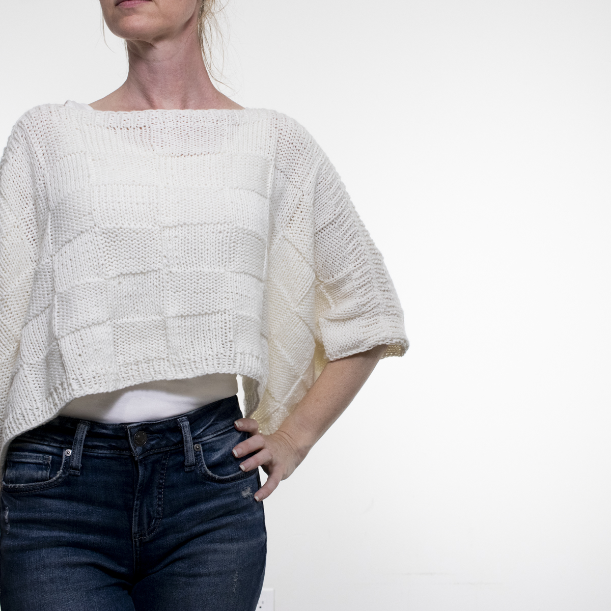Each side is quilted seamlessly, giving you a smooth finish without sewing! This seamless(ish) poncho pattern is knit in two pieces, giving you 2 smooth quilted blankets that requires 4 simple seams turning it into a lightweight poncho. The seamless(ish) design means no complicated sewing — just relaxing knitting with simple knit and purl stitches. Featuring a beautiful checkerboard texture, an oversized, relaxed fit using breathable DK weight yarn, this poncho is as comfortable to make as it is to wear.